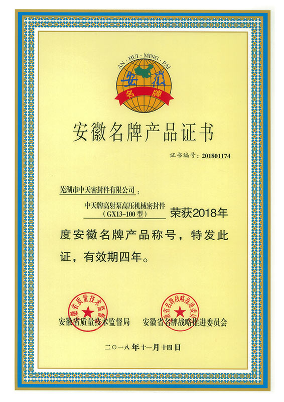 安徽名牌產(chǎn)品證書